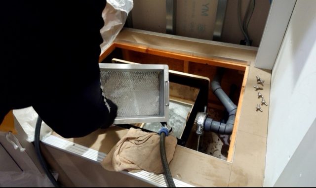 ホーム » 実績紹介 » 中村区 » 愛知県名古屋市中村区テナント 簡易厨房床設置グリストラップ清掃